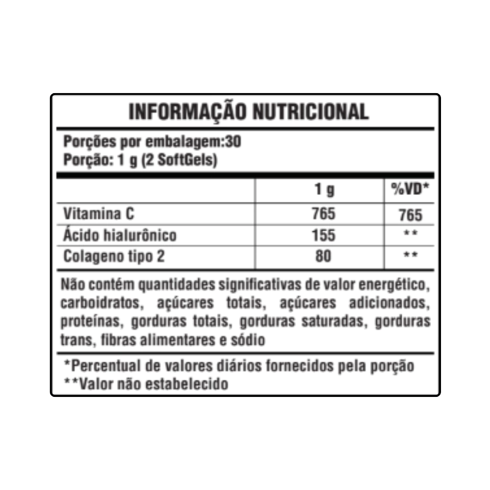 Metilsulfonilmetano (MSM), ácido ascórbico (vitamina C), DL alfa-tocoferol (vitamina E), hialuronato de sódio e zinco picolinato.