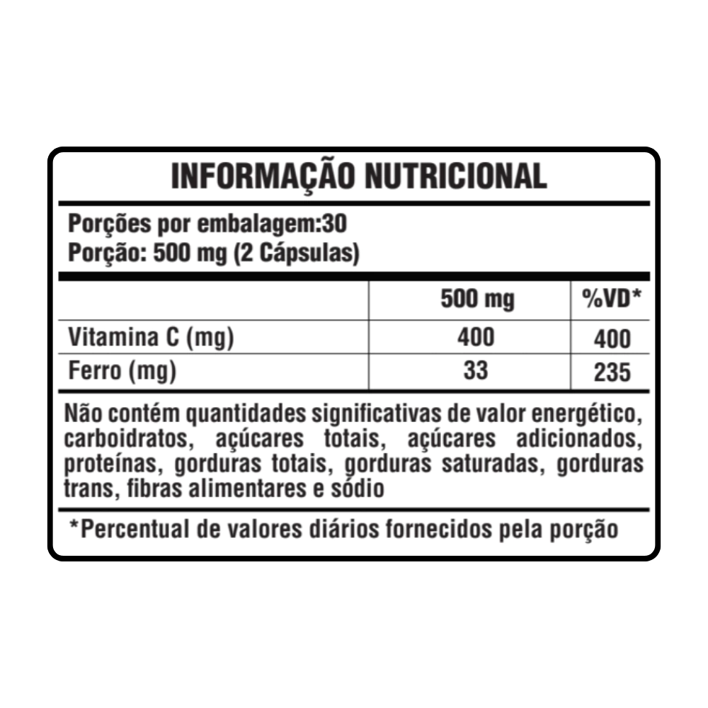 Combinação essencial para o suporte à formação saudável das hemácias e prevenção de deficiências nutricionais. O ferro é um mineral fundamental no transporte de oxigênio no organismo, e sua absorção é potencializada pela presença da vitamina C, que atua como cofator na sua metabolização. Ideal para auxiliar em casos de anemia ferropriva, fadiga, baixa imunidade e cansaço físico e mental.