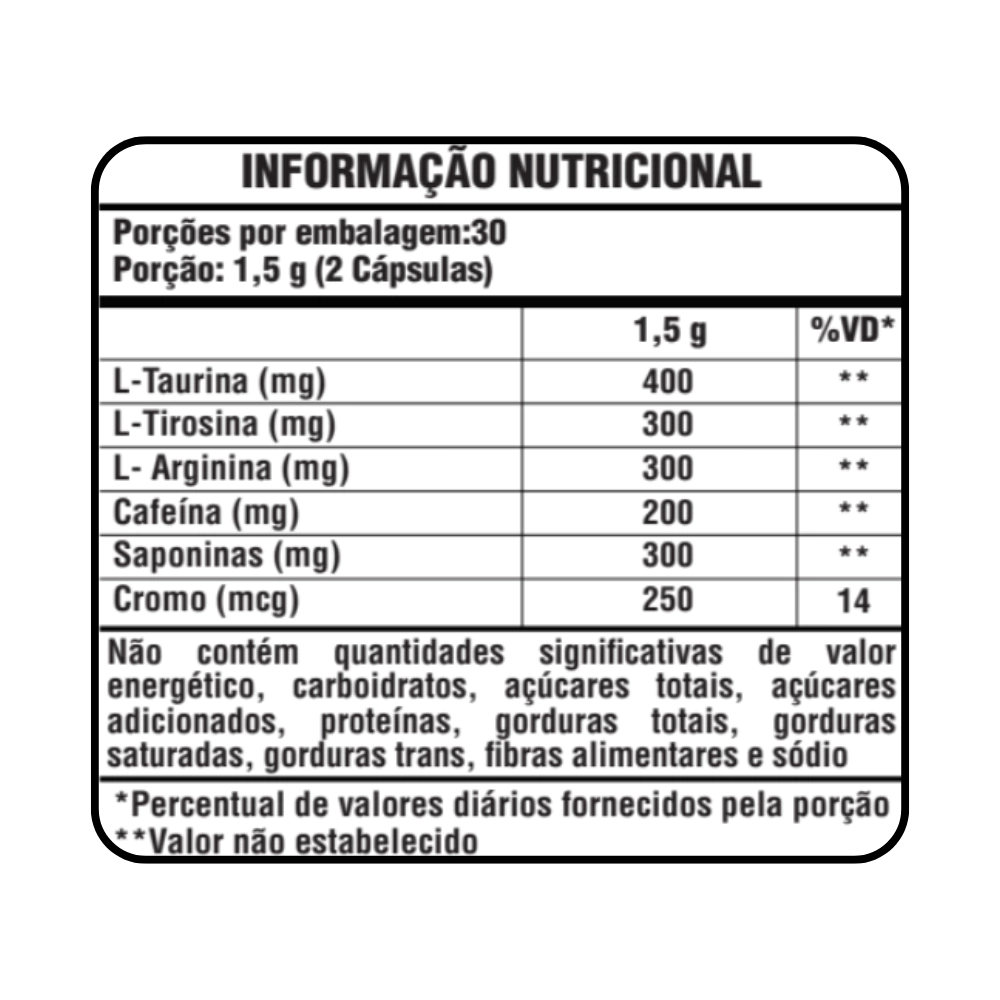 L-arginina, capsiate, cafeína fenogrego, picolinato de cromo, tirosina, taurina