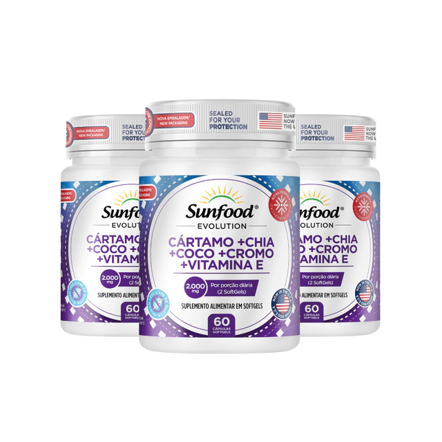 Óleo de cártamocom alto teor de ácido oleico (CarthamustinctoriousL.), óleo de semente de chia (Salvia hispanicaL.), óleo de coco (CocosnuciferaL.), óleo de girassol com alto teor de ácido oleico (Helianthus annuusL.),alfatocoferol (Vitamina E) epicolinato de cromo.