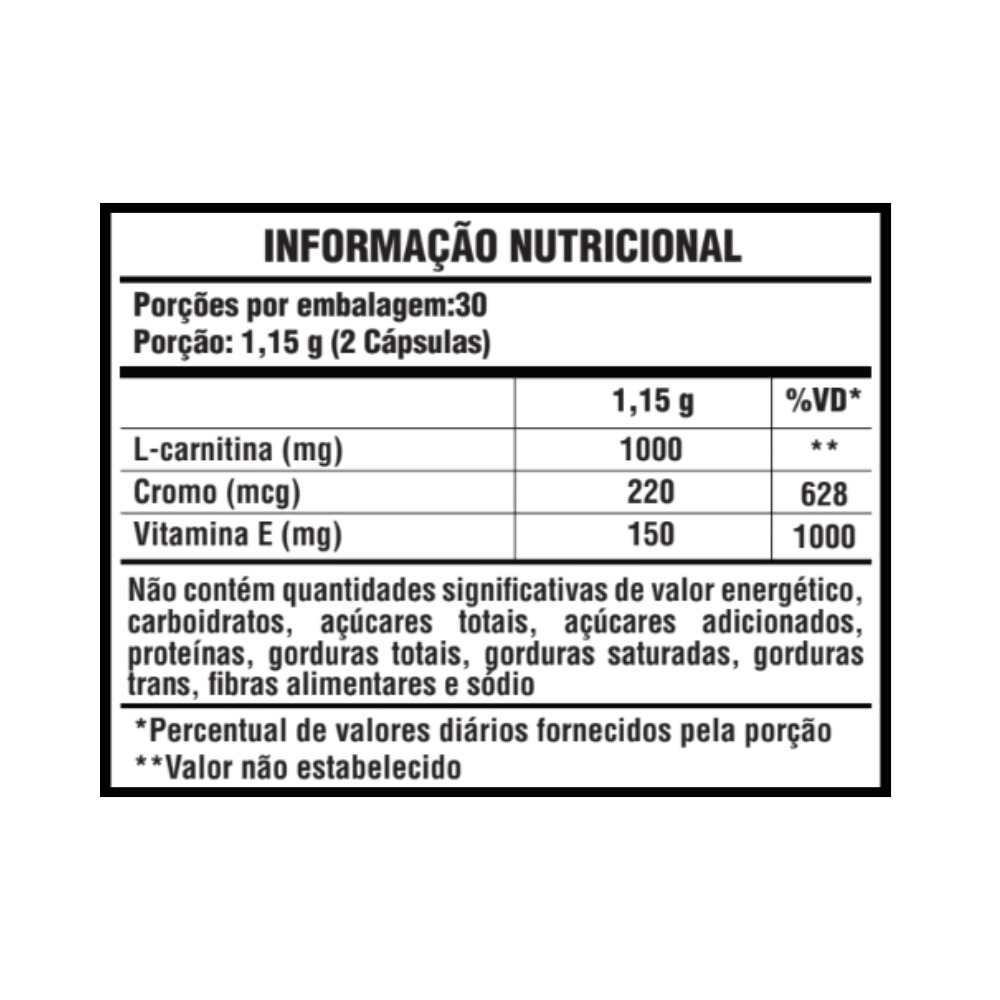 L-carnitina, picolinato de cromo e DL-alfa-tocoferol (vitamina E).