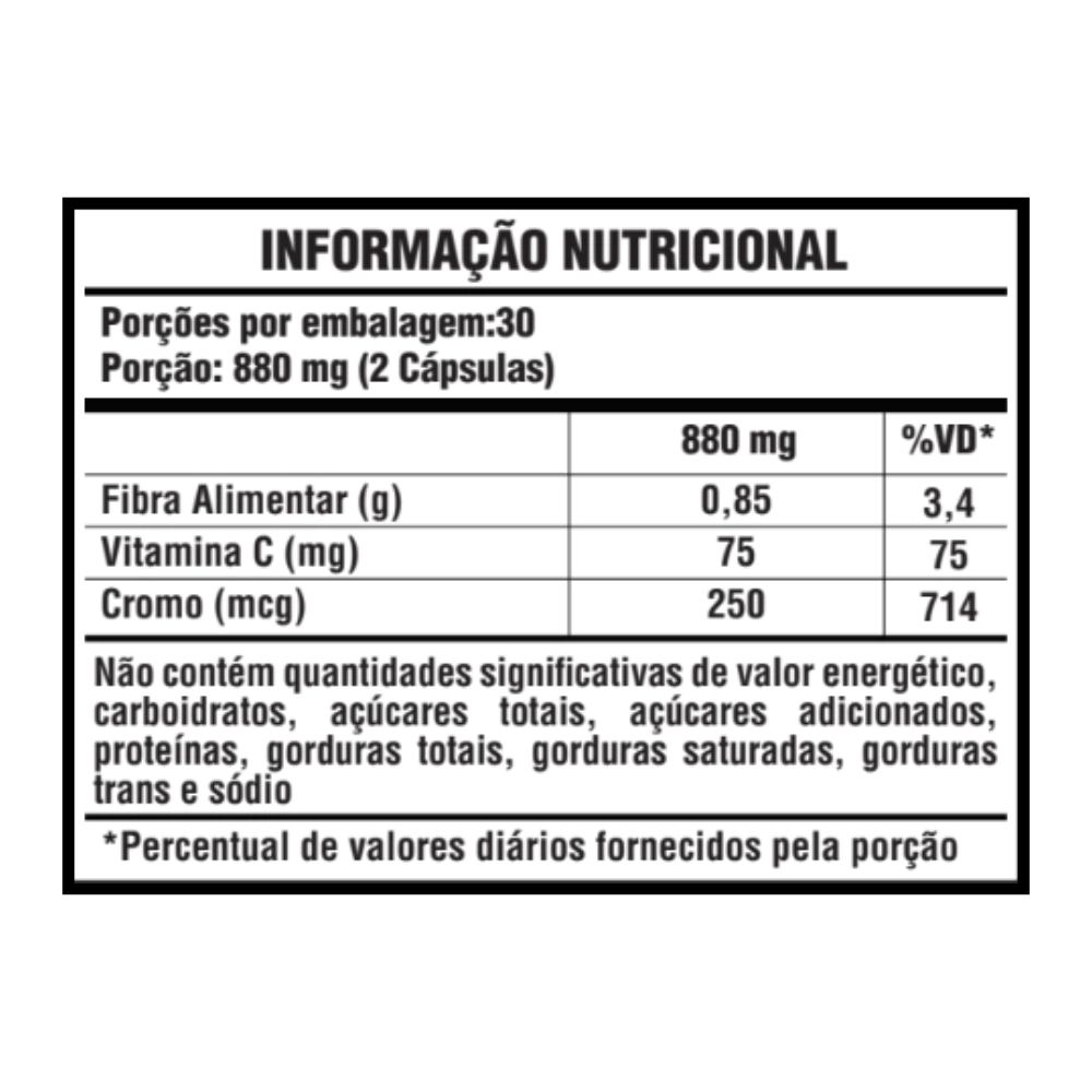 INGREDIENTES: Psyllium (Plantago ovatae), quitosana, ácidoascórbico (vitamina C) e picolinato de cromo. Antiumectantes:dióxido de silício coloidal. Composição da cápsula: Gelatina eágua purificada. Agente de massa: Glicerina.